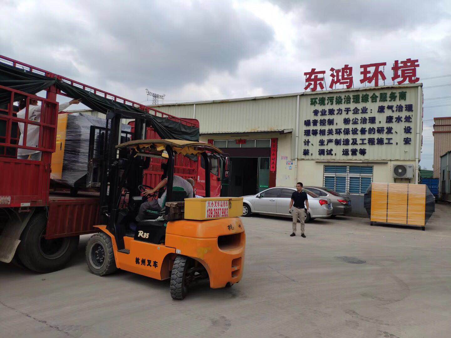 烈日炎炎,兩車東鴻環保設備發往福建