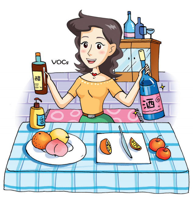 日常食用的食醋中包含醋酸(學名乙酸),可揮發進入空氣,屬于含氧的VOCs(簡稱OVOCs)。酒類飲品都含有酒精(學名乙醇),屬于揮發性較強的醇類,當然也屬于VOCs,是一種OVOCs。香水中含有各種各樣的植物提煉或化學合成的芳香性化合物、精油類物質等,其中有許多屬于VOCs,例如芳香醛、芳香酯等。此外香水中的助溶劑通常是乙醇等VOCs。一些水果(例如檸檬、橙子等)和日用清洗劑中含有苧烯,也是具有香味的VOCs。家庭裝修和家具等釋放的室內空氣污染物,例如甲醛、苯、甲苯等都屬于VOCs。