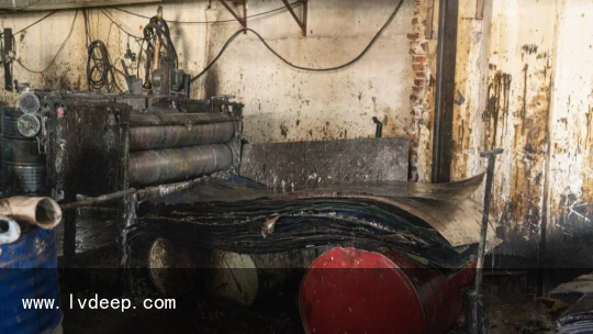 「現場用于壓平桶身的平整機 」 處置懲罰過程中工人任由廢鐵桶里面的殘留物流出地面滿是黏糊糊的不明物質車間內彌漫著刺鼻的氣味可見現場揮發性有機化合物氣體 的濃度十分高在切割過程中極易發生爆炸