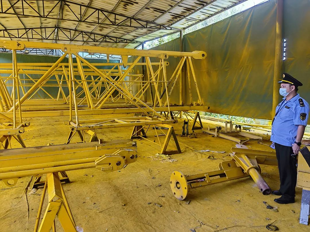經查,該公司主要從事吊塔翻新加工,未辦理環保審批和自主驗收手續,設有檢修、拆卸、打磨、焊接、噴漆等工序及噴槍、手磨機等生產設備。現場檢查時,該公司的鐵皮廠房處于半露天狀態,僅用鐵皮作頂、帆布作圍檔,地面覆蓋了一層厚厚的黃色漆垢。鐵皮房內工人正在打磨塔架部件,產生的粉塵未經處理在室內無組織排放。